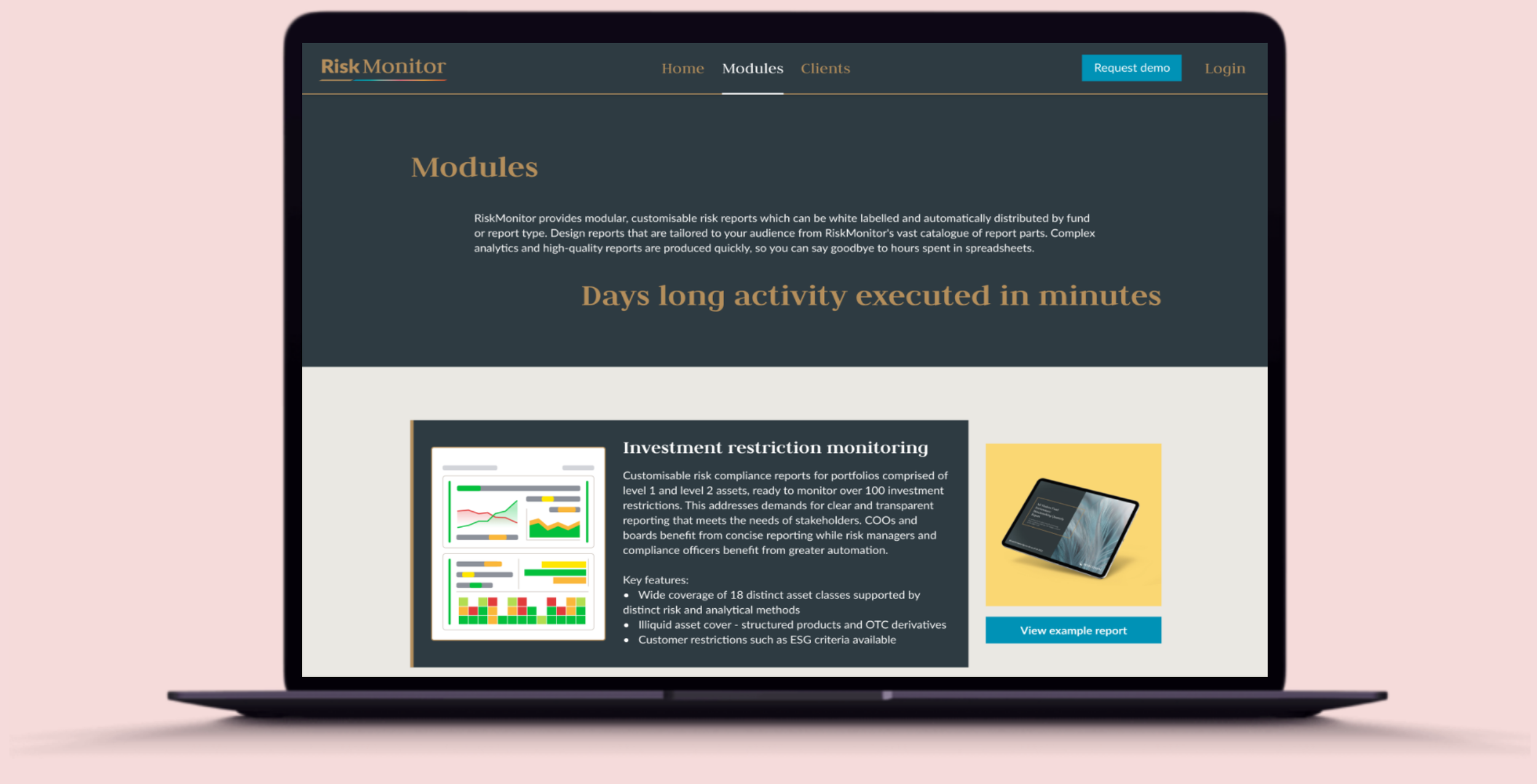 RiskMonitor (in live build) | Responsive site | SaaS demo